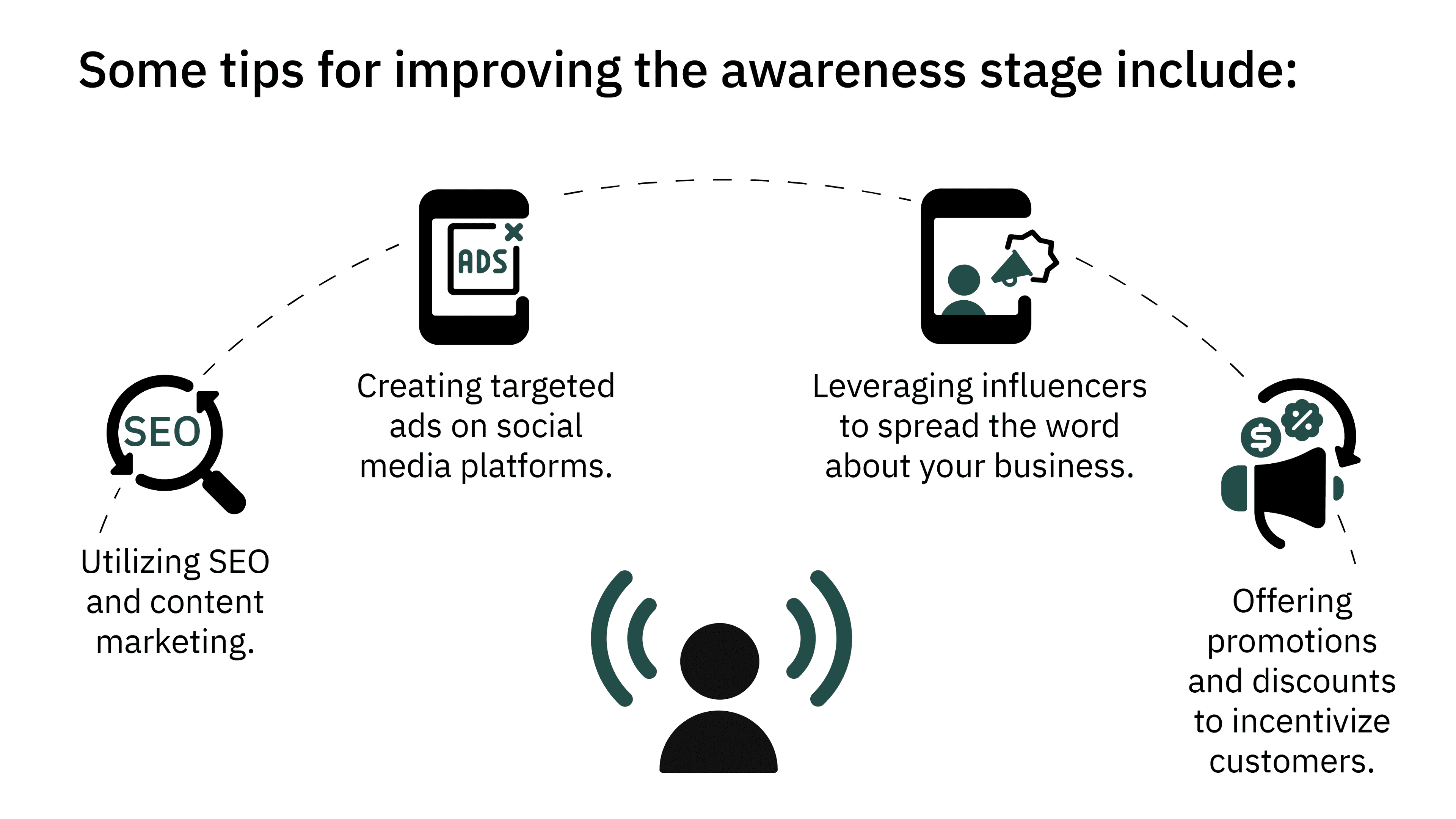 This is the initial stage in which customers become aware of a product or service. They may come across it through online advertising, search engines, social media or other channels. At this point, they haven’t yet discovered your brand and its values, and they likely have never actually purchased a product or a service from you. During the Awareness phase, reach, targeting, and influence is crucial. Trying to make it so that when your users need something you offer, you’re the first though that they have. And considering that 92% of people don't go past the first page in Google, this is a surefire way to reach your audience. A robust digital marketing strategy, coupled with knowing who you’re trying to attract and an effective brand presence, can be the difference between you and your competitors. Improving the awareness stage of the ecommerce user journey is essential for businesses that want to increase acquisition. Some tips for improving this stage include: