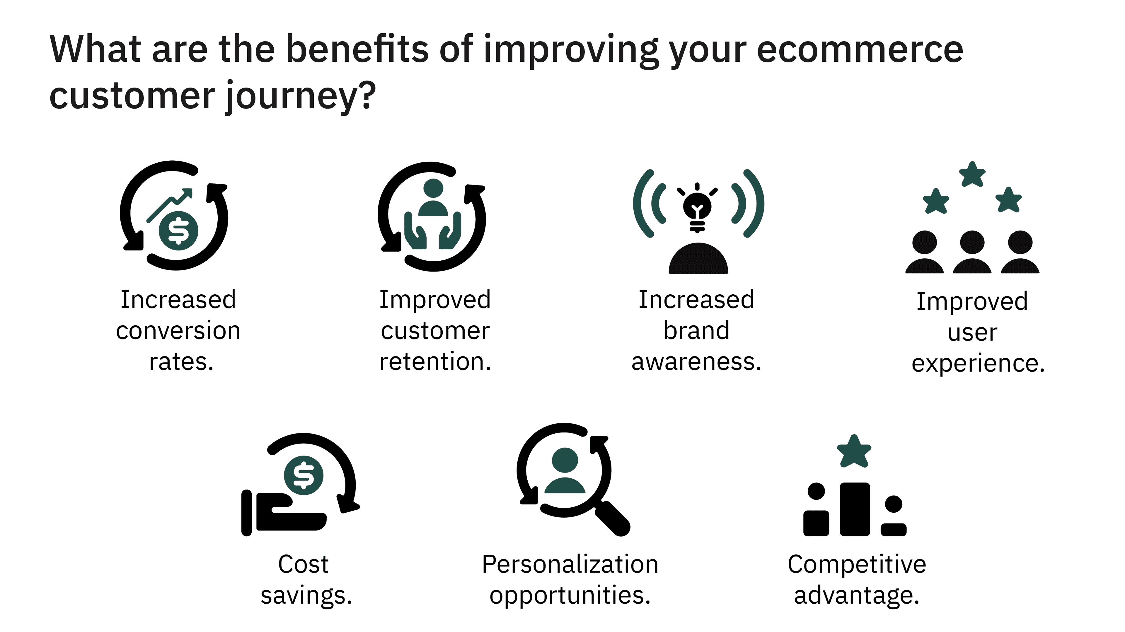 The ecommerce customer journey can help you identify areas of friction or dissatisfaction in your process, so you can take steps to address them. By understanding where customers are in their experience, you can provide a more tailored pathway for everyone, which helps to increase sales and build loyalty.