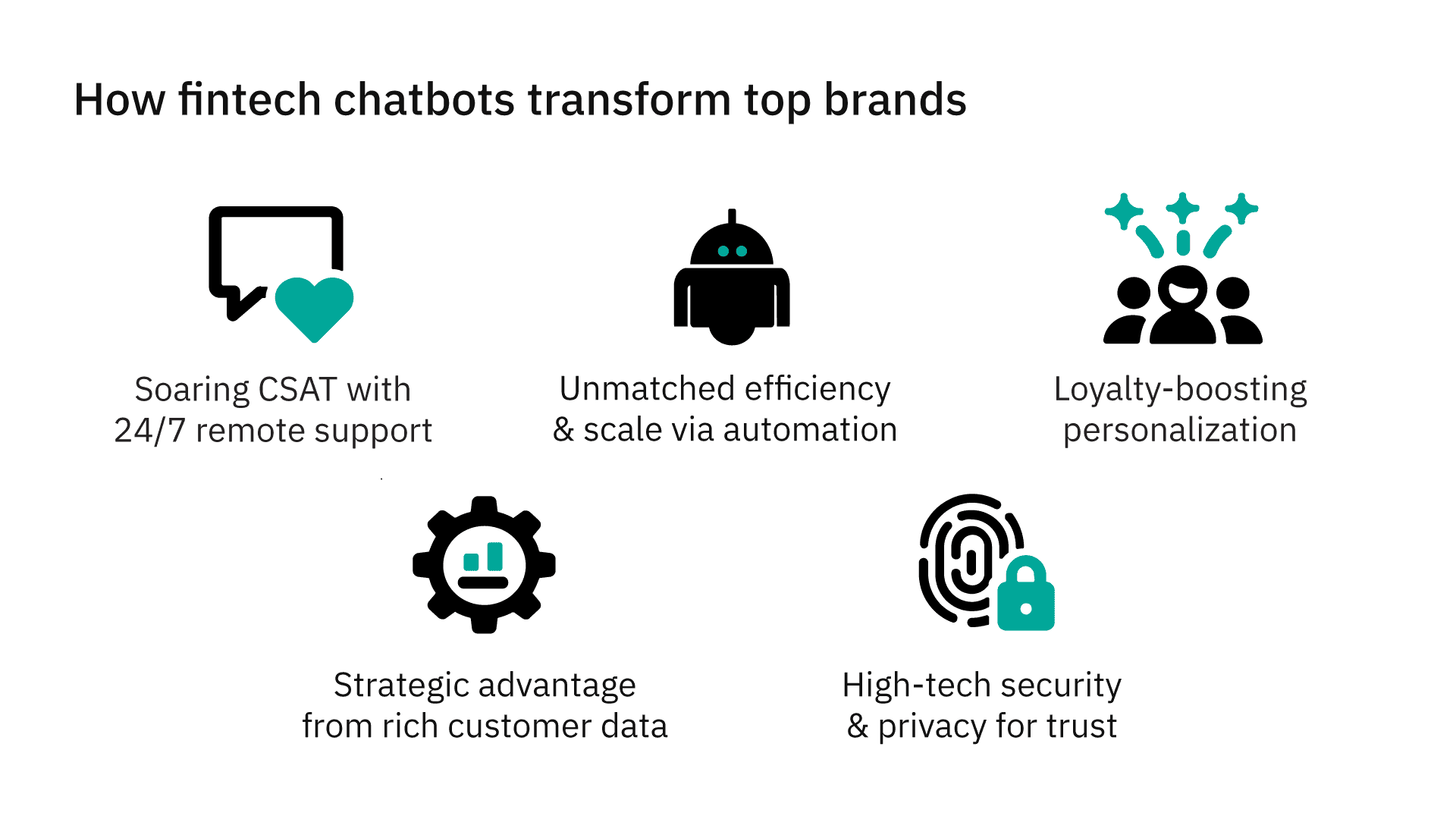 But as leading finance brands vie for modern customers’ hearts, how exactly do these virtual assistants make a real impact? From brilliant CX at the touch of a button to borderline clairvoyant user and trend insights, the possibilities are rich yet complex - and that’s where your competitive advantage lies. After all, standing apart and getting ahead means not only adopting essential upgrades, but being the brand that wields them best. Dive into our practical guide to fintech chatbots to master the benefits, use cases, and best practices you need to secure loyalty, maximize efficiency, and reap record ROI.
