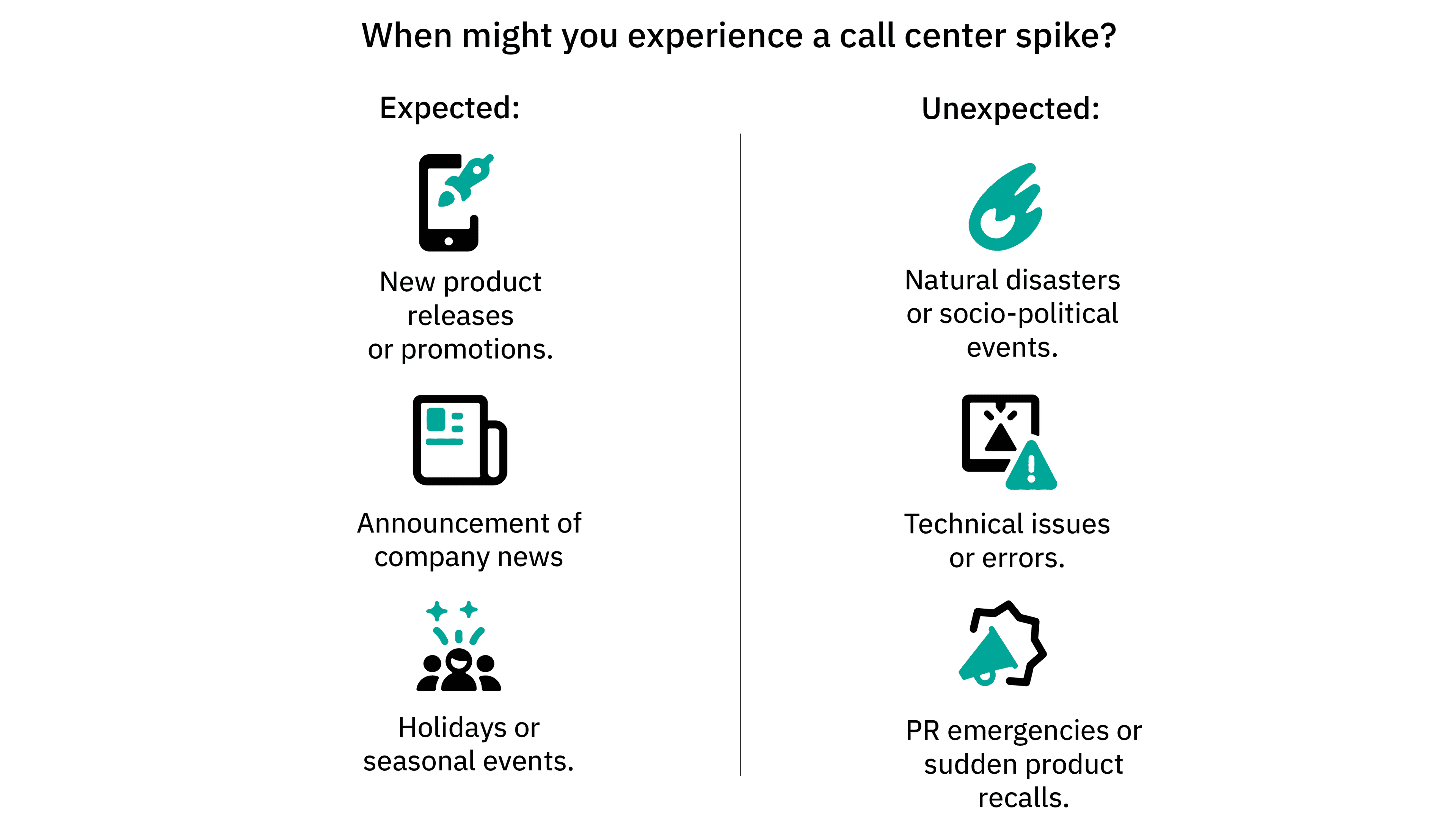 Customer frustration, employee stress, and amidst it all… losing out on opportunities to connect with your consumer base and drive further business. Call center spikes, whether expected or not, can significantly impact KPIs not just in the moment, but for months to come.