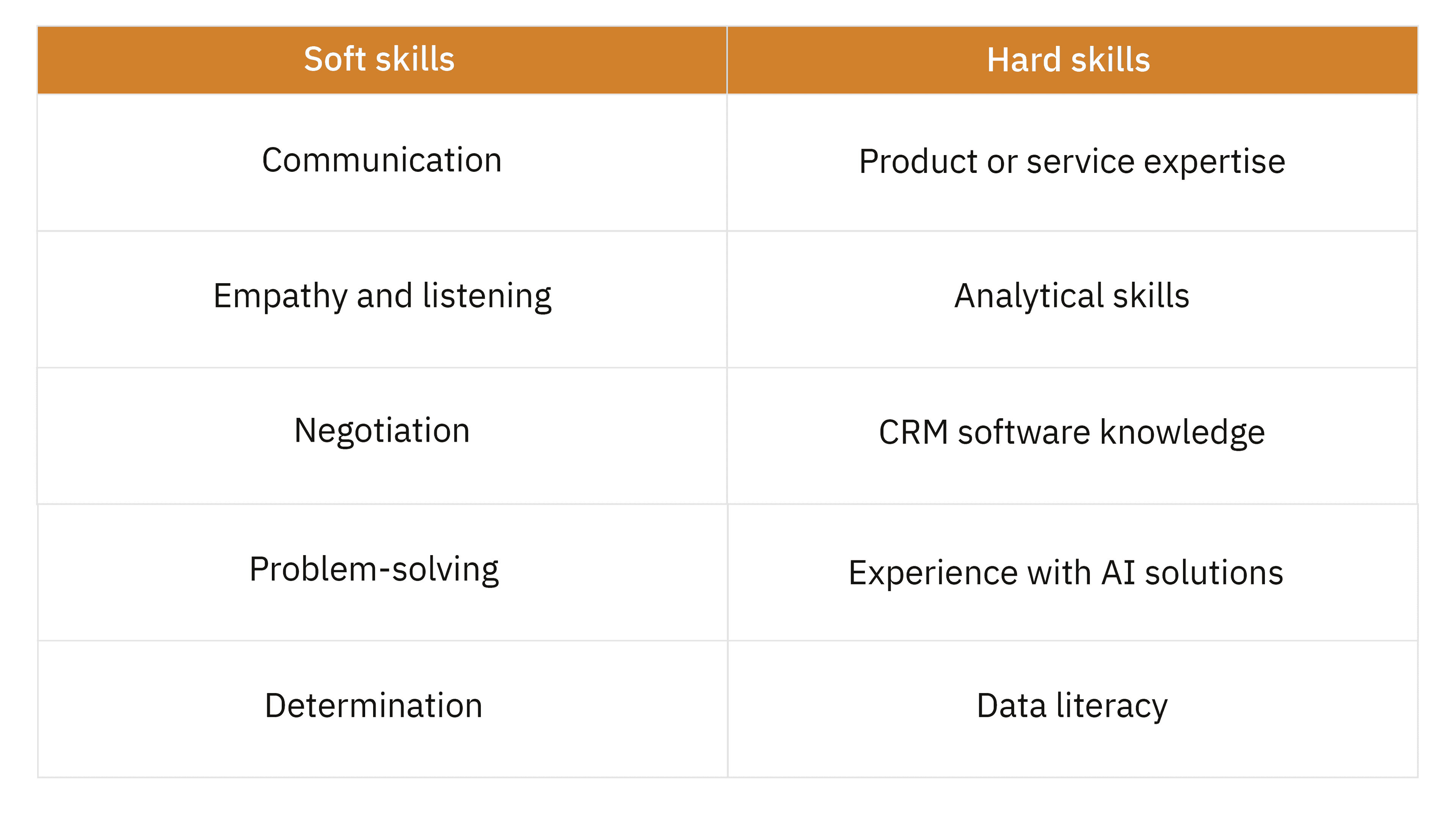 When it comes to hard skills, agents should have excellent knowledge of software such as CRM databases and ticketing systems. Additionally, they should also have a solid understanding of the company's product or service offerings, so that they can assist customers more effectively. Furthermore, they should also possess good technical writing and CX writing skills, as well as data literacy skills. It might even be beneficial for them to have experience working with AI-based solutions such as chatbots or translators.