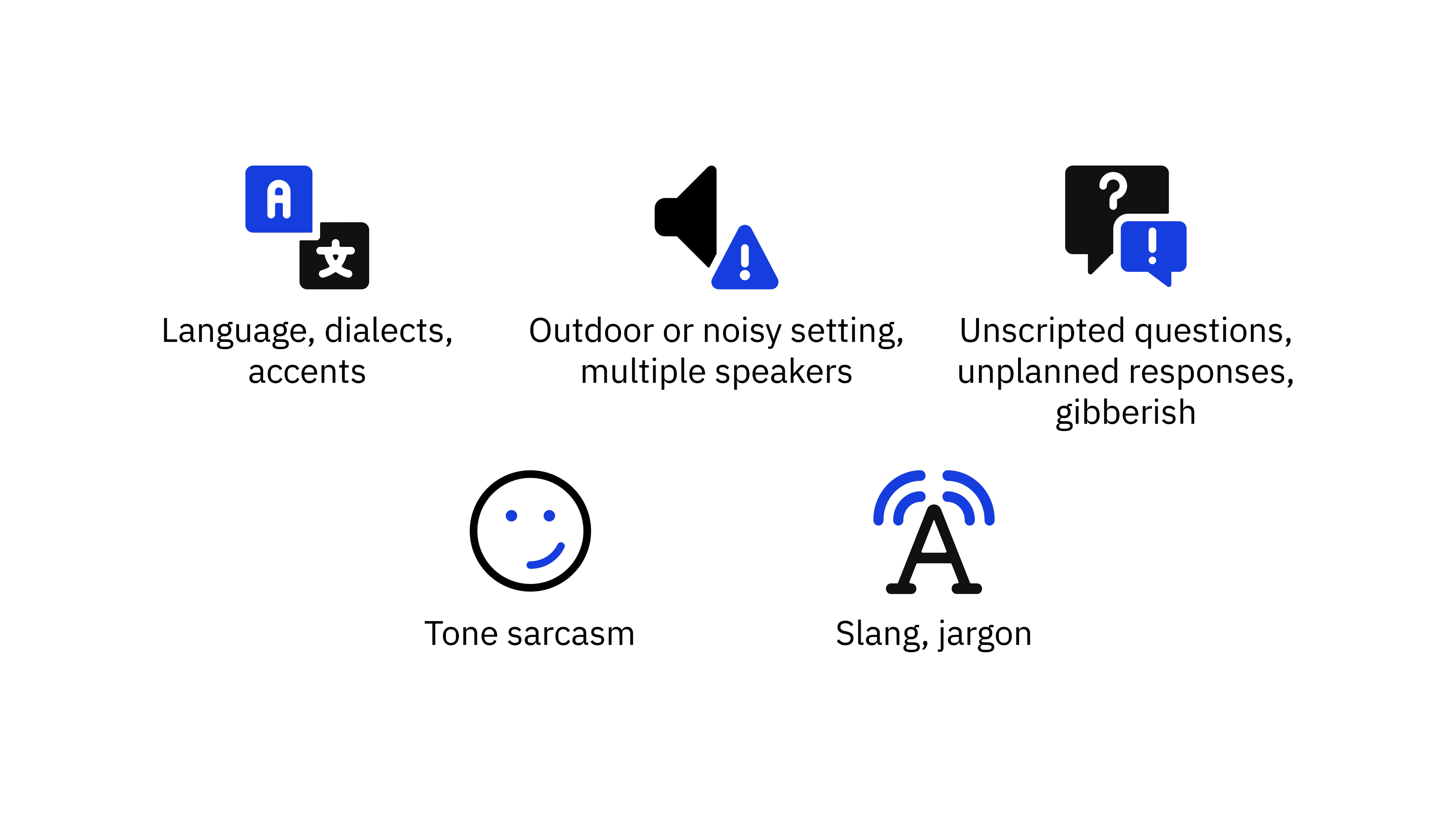 Chances are, your customers are not a homogenous group, and so people will have different accents or dialects that they use to communicate with you. They may even use jargon or slang terms. Whilst this may similarly pose trouble for a human agent (depending on region, market, etc.), it could send your bot into a tailspin trying to make sense of unfamiliar input.